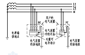 電源端有一點直接接地,電氣裝置的外露可電導部分直接接地,此接地點在電氣上獨立于電源端的接地點(見圖1-4)。