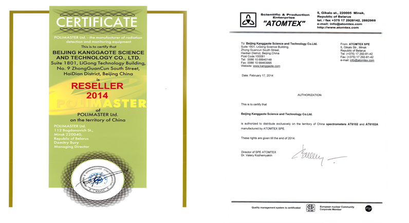 多年來,北京康高特科技有限公司通過與國外知名公司的合作,取得了*優惠條件供應儀器設備的資格。其中,白俄羅斯Atomtex公司和Polimaster公司的多款儀器設備一路暢銷,獲得眾多好評。今年Atomtex公司和Polimaster公司按流程對我公司進行二次審核,根據我公司良好經營狀況、規范經營體系以及不斷發展壯大的規模,ATOMTEX公司和Polimaster公司延長我公司在華代理權時限。今后,北京康高特科技有限公司,將繼續為大家推出Atomtex公司和Polimaster公司高品質,低價格的先進儀器設備。