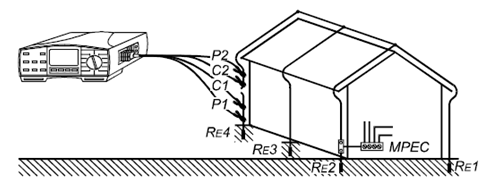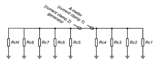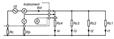 RE1-RE4為待測接地系統中單個的接地電阻