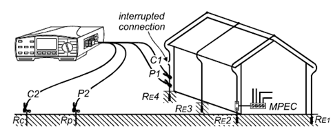 (a)   斷開待測的接地電極,使用4線2探頭的方法測量